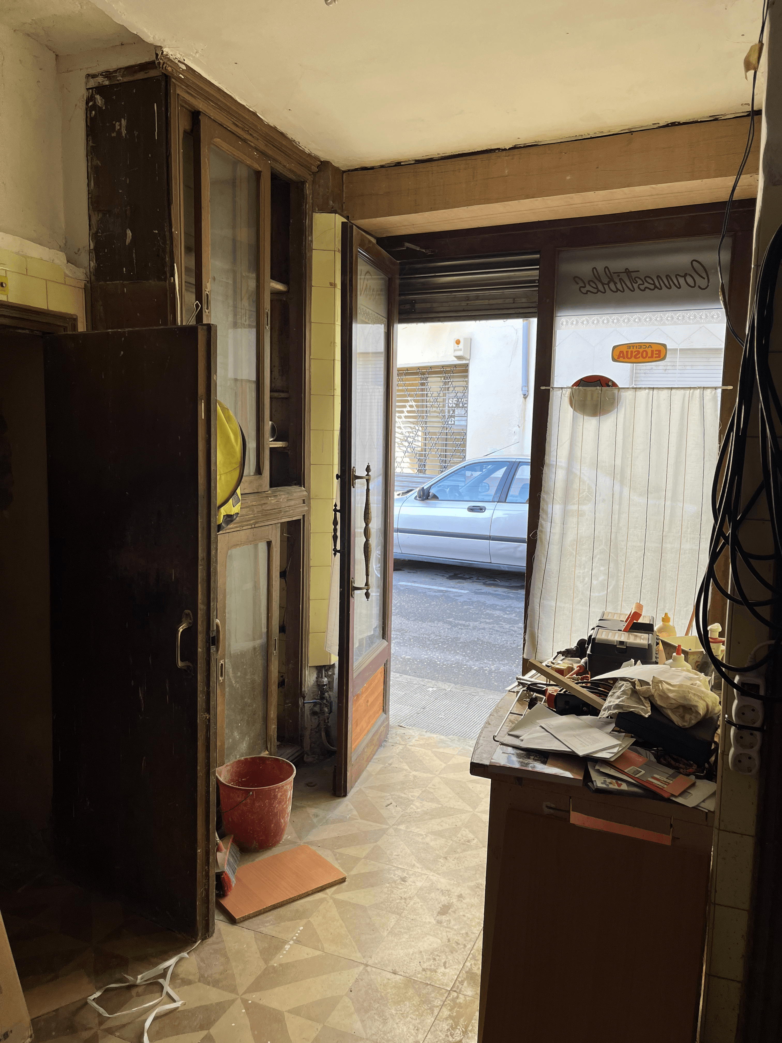 Once a neighborhood shop, the ground floor still holds its original character: hydraulic tile floors, a walk-in fridge, and iron shopfront doors with their original signage. Every layer tells a piece of the building’s history, and much of the work here focuses on uncovering those stories and giving them new purpose.